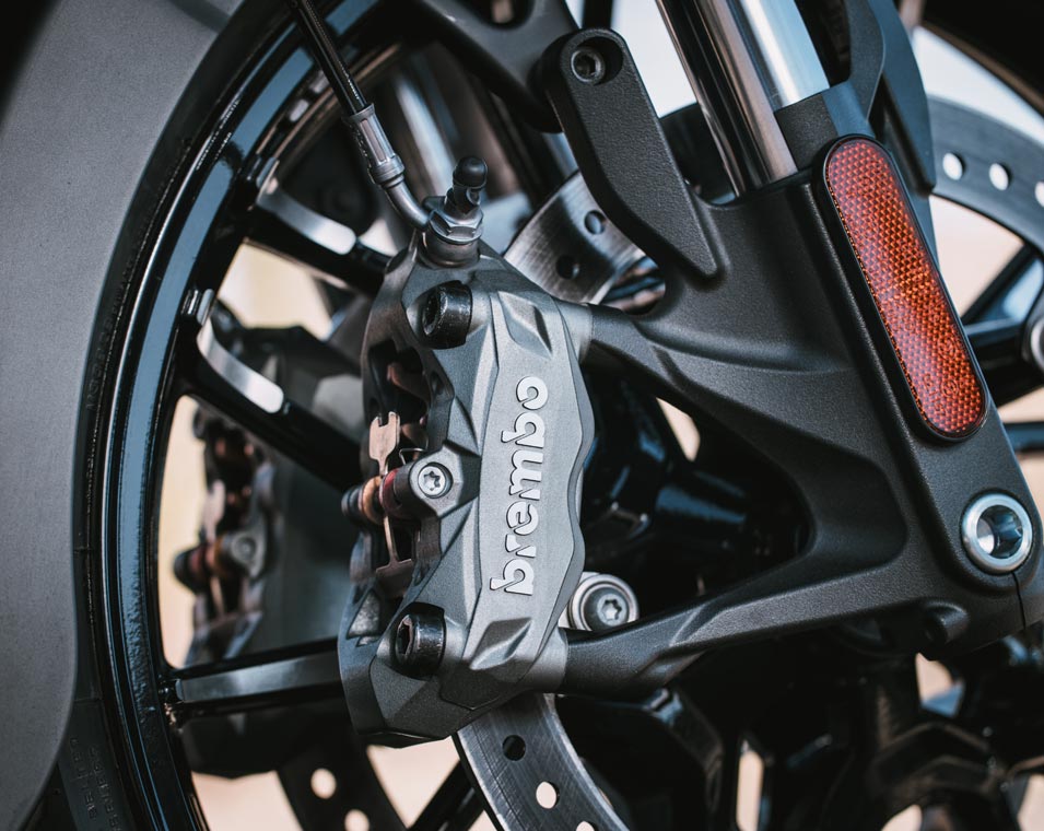 ブレーキ/フロント Brembo®キャリパー、デュアル・セミフローティングローター:320mm x 5.0mm