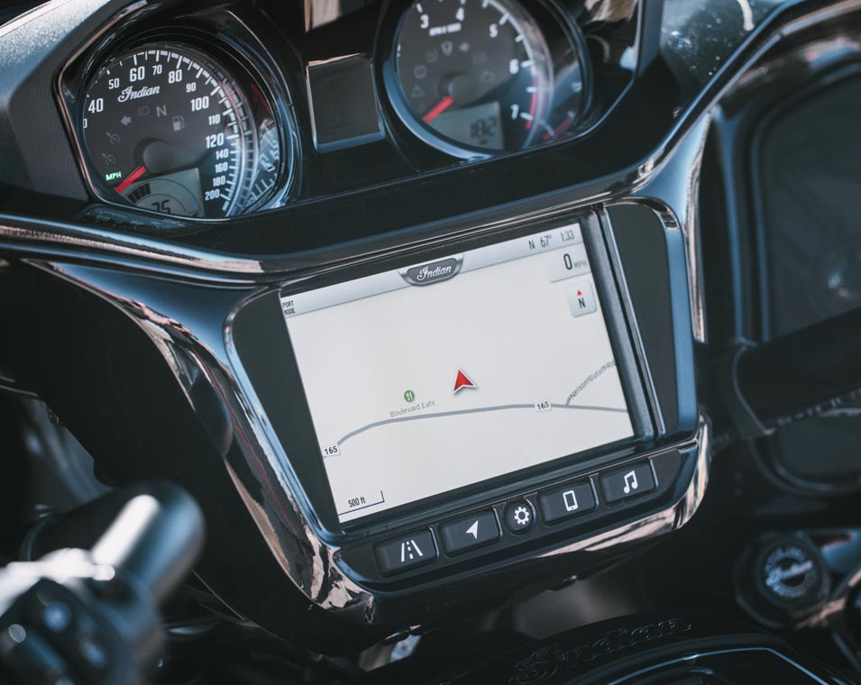 Ride Command® Apple CarPlay®、Bluetooth®接続、設定可能なゲージ、走行統計情報など表示可能な7インチディスプレイを搭載。