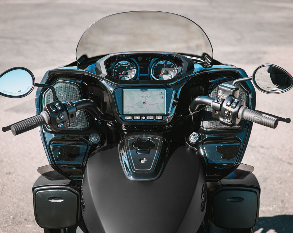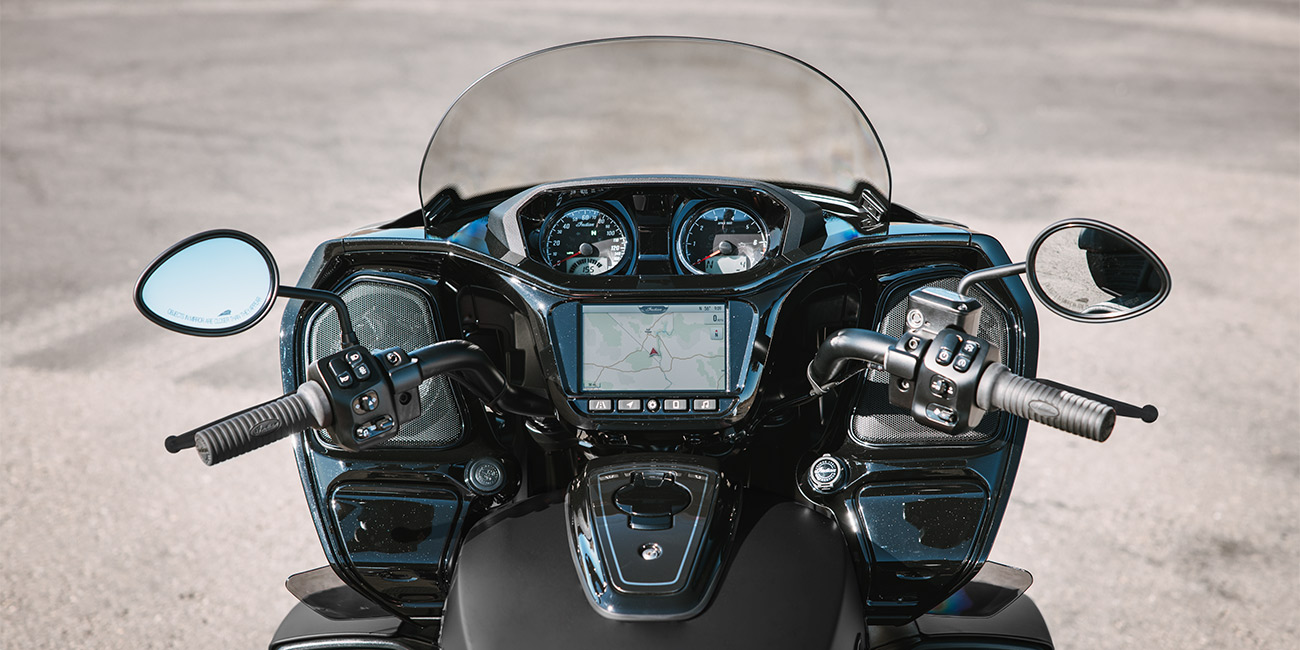 Ride Command® Apple CarPlay®、Bluetooth®接続、設定可能なゲージ、走行統計情報など表示可能な7インチディスプレイを搭載。